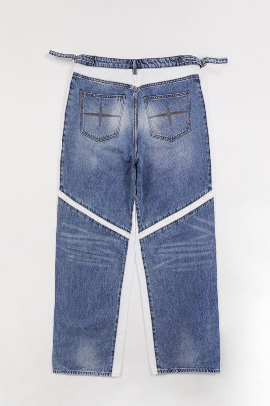 Badblood Line Panel Denim Pants Large Fit Blue/White