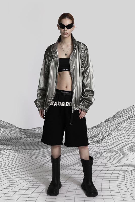 Badblood Printed Logo Nylon Track Jacket Khaki