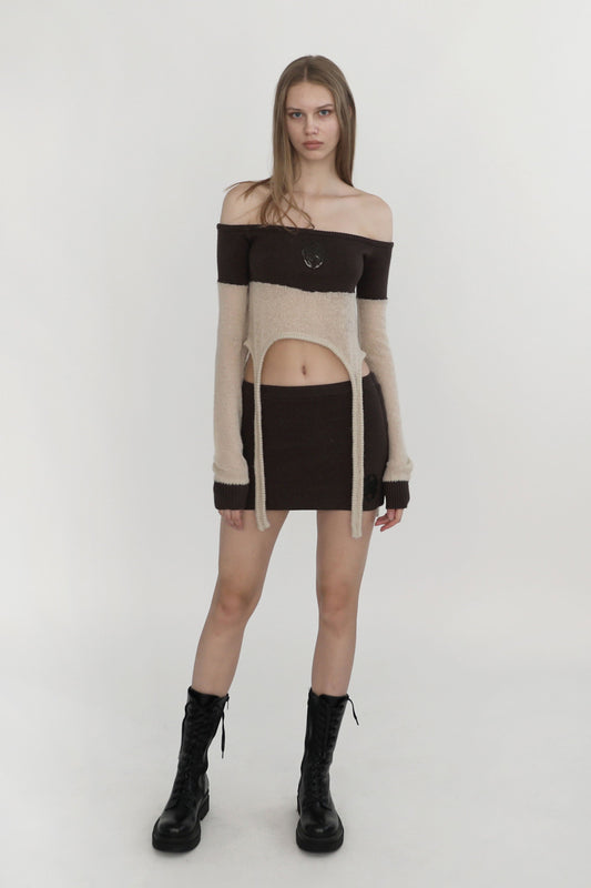 Badblood Kiddo Knit Off Shoulder Top Cream/Brown