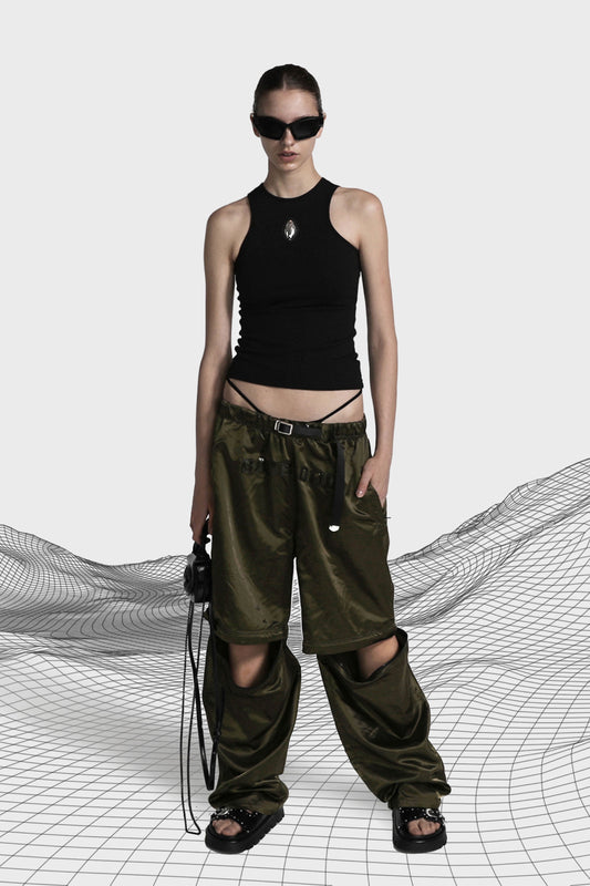 Badblood Leather Logo Nylon 2 Way Track Pants Khaki