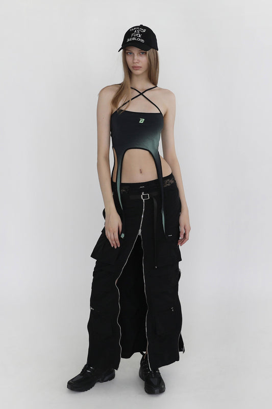 Badblood Parachute Zip Up Cargo Skirt Black