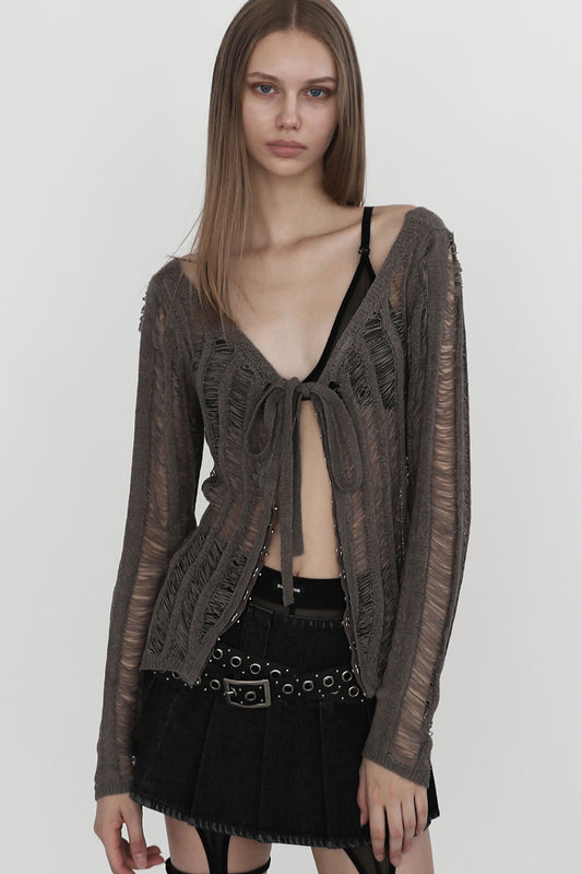 Badblood Ladder Knit Cardigan Easy Fit Gray