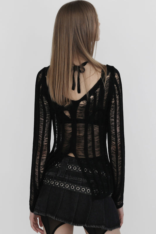Badblood Ladder Knit Cardigan Easy Fit Black