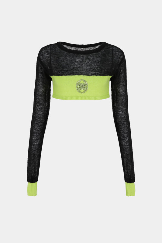 Badblood Kiddo Knit Cropped Long Sleeve Black/Neon